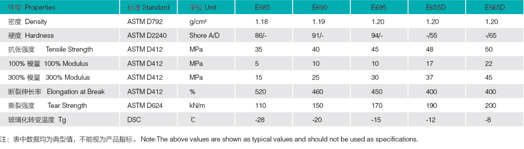 聚酯TPU 型號列表