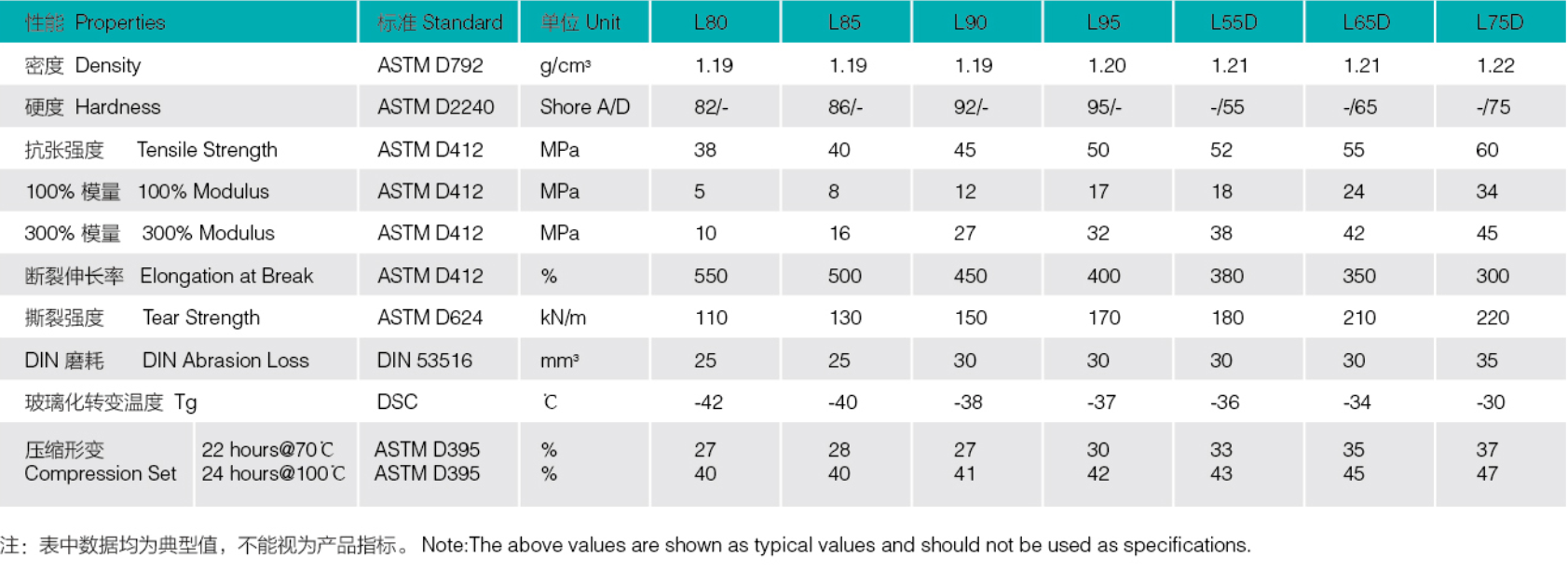 聚(jù)己內酯TPU 型(xíng)號列表+
