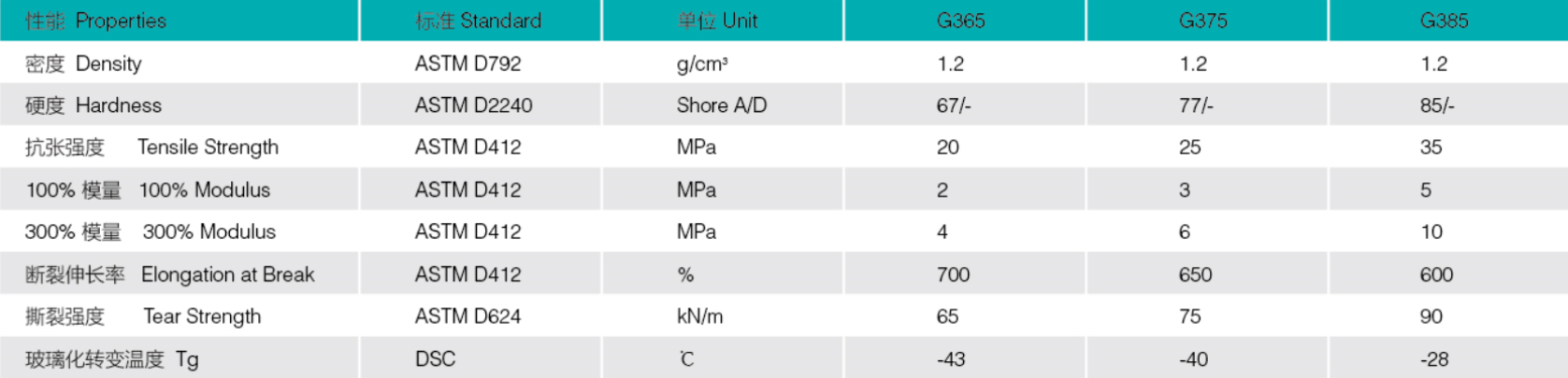 生物基TPU 型號列表