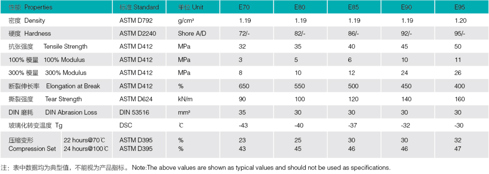 性能特性:優異的耐水解性、抗壓縮變形性(xìng)、耐(nài)油性、耐溶(róng)劑(jì)性、耐磨性、高回彈(dàn)性